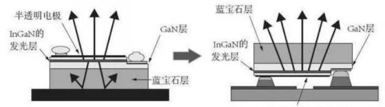 相對于正裝COB封裝,倒裝COB結構更加簡(jiǎn)單 LED耐更高電流,制造工藝簡(jiǎn)化 無(wú)金線(xiàn) 散熱更佳,穩定性高,且RGB混光效果好。